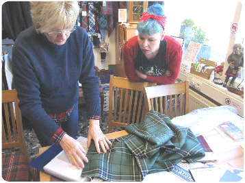 Bij ons kunt u aan de speciale tartantafel in alle rust de stoffen bekijken en voelen.